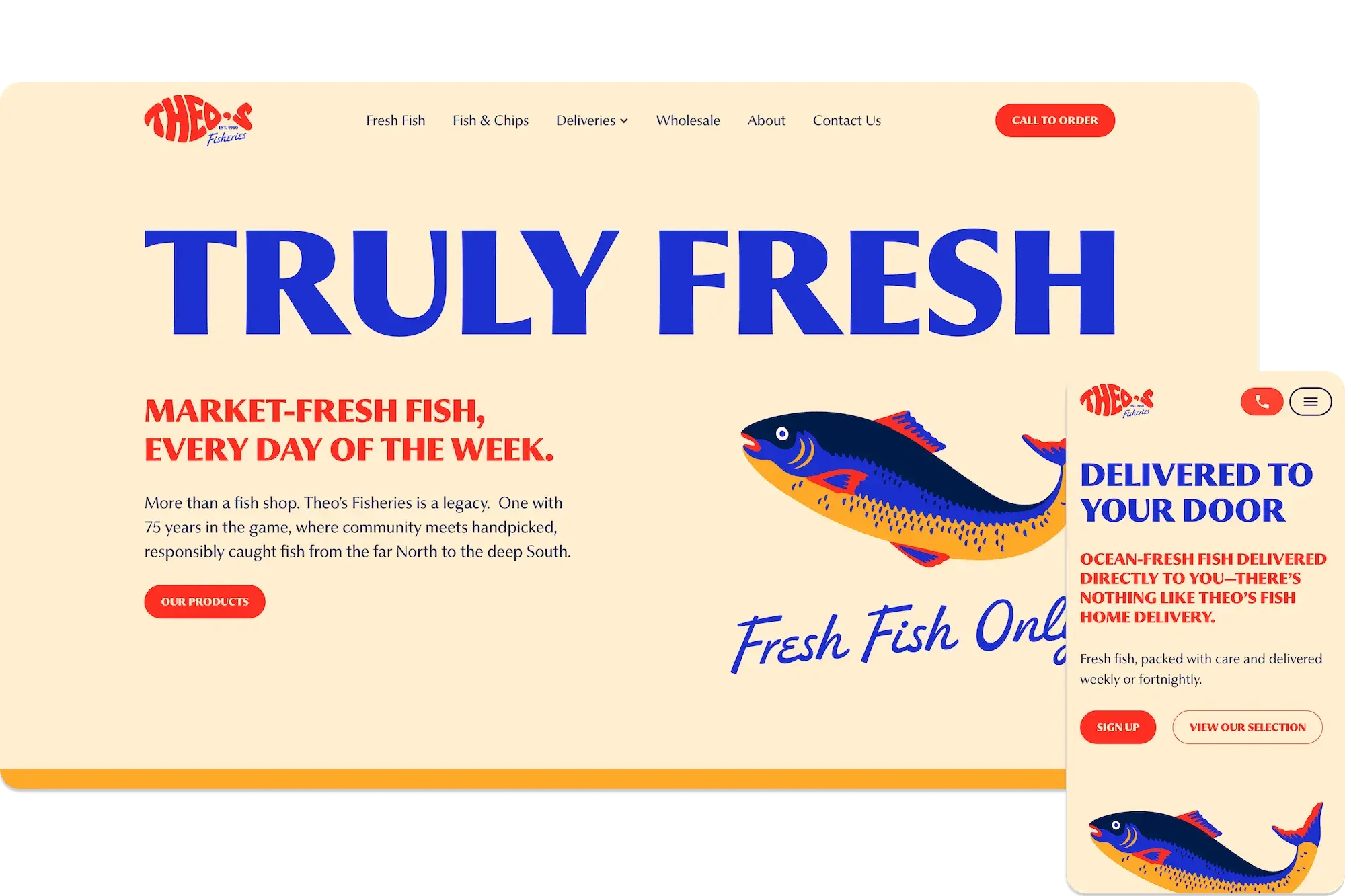 A two-phase Webflow rebuild and brand consolidation that unified Theo’s Fisheries and Sea 2 Door into one cohesive, future-ready ordering experience.